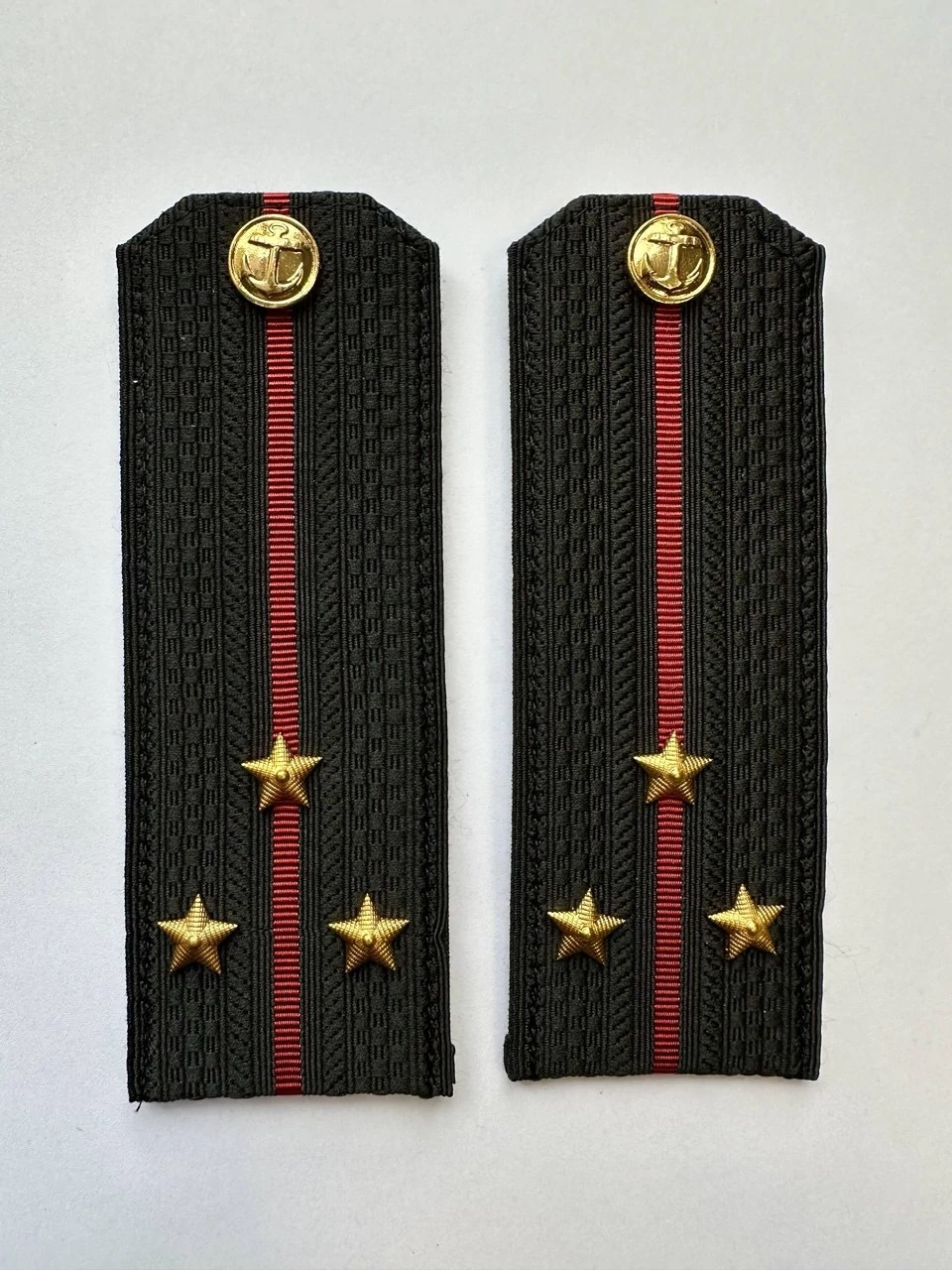Погоны ВМФ Старший Лейтенант картон цвет черный с красными просветами. Погоны ВМФ продаются парами в сборе полностью готовы к использованию. Погоны изготовленный из качественной жаккардовой ткани на картонной основе. С оборотной стороны имеется хлястик для крепления погон к одежде.