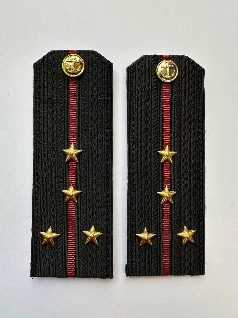 Погоны ВМФ Капитан Лейтенант картон цвет черный с красными просветами. Погоны ВМФ продаются парами в сборе полностью готовы к использованию. Погоны изготовленный из качественной жаккардовой ткани на картонной основе. С оборотной стороны имеется хлястик для крепления погон к одежде.