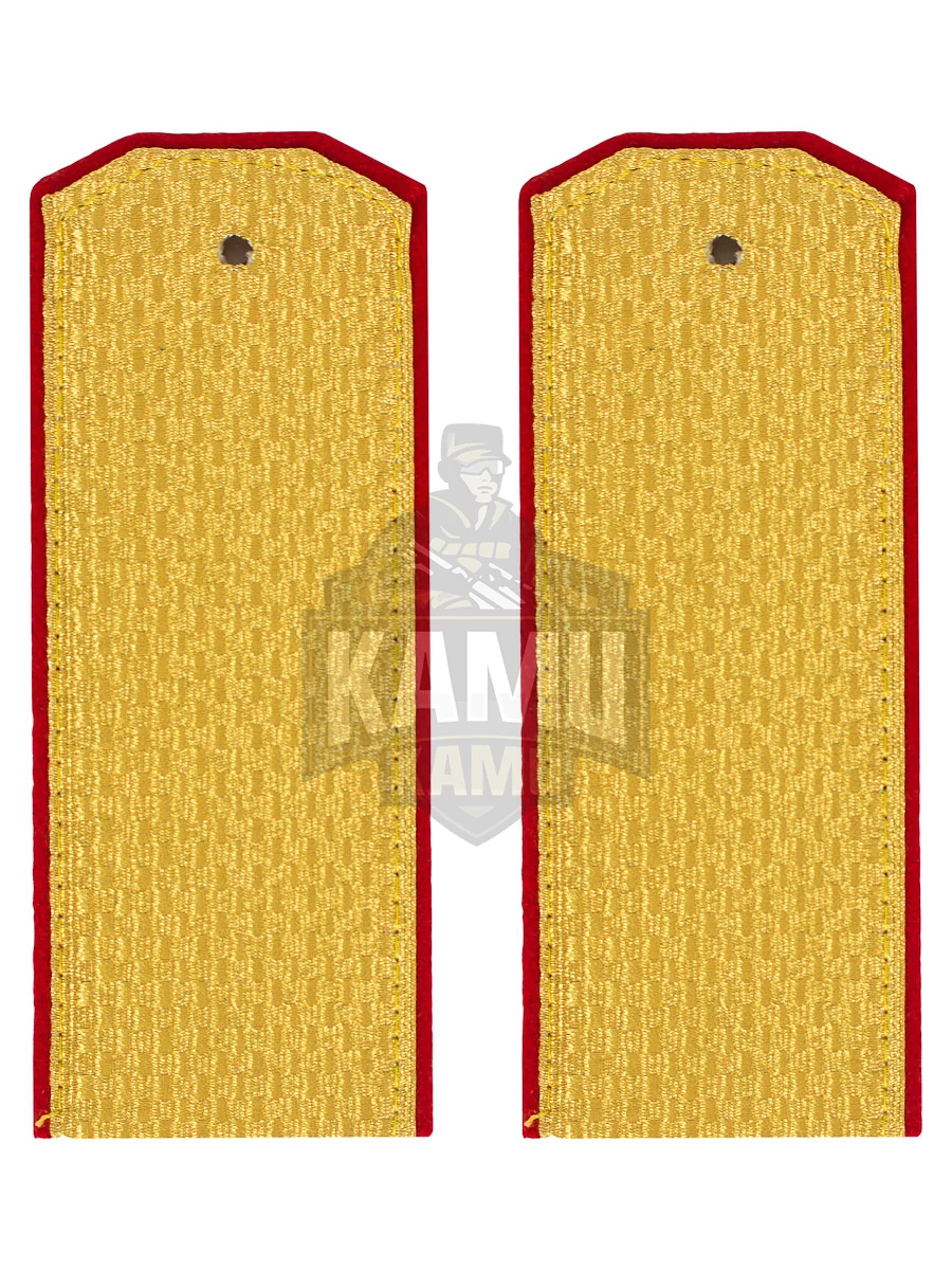 Погоны общевойсковые парадные золотые для рядовых в комплекте идут кляммеры. Погоны парадные золотого цвета Общевойсковые, верх - трапеция. Основа - картон Материал: вискоза,галун,шерсть Способ крепления: пришивной Длина: 14 см Ширина: 5 см.