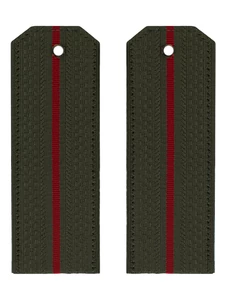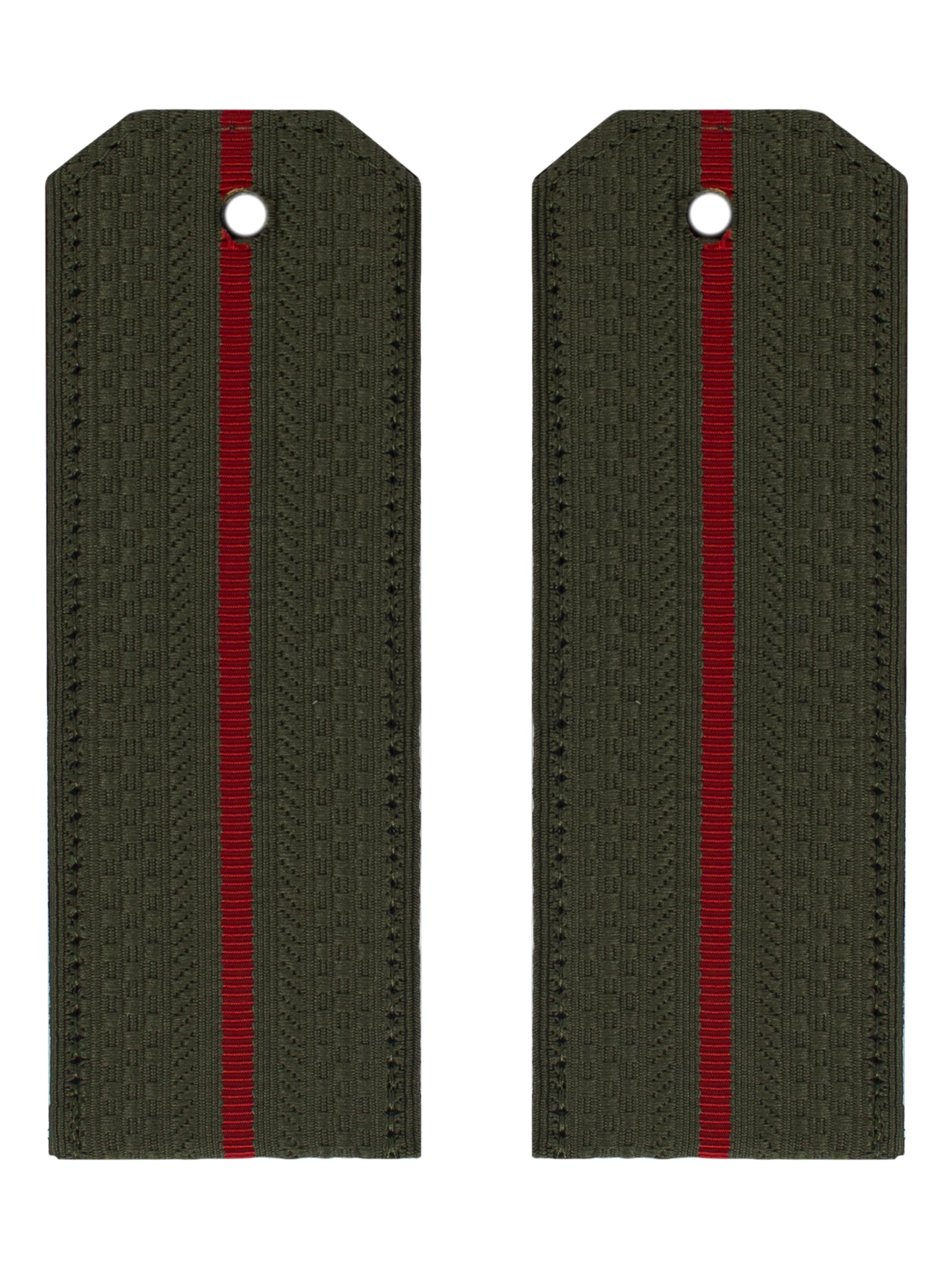 Поле погон выполнено из галунной ленты оливкового цвета с одной продольной полосой красного цвета (просветом).