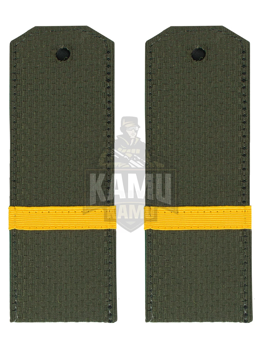 Поле погон выполнено из галунной ленты оливкового цвета. Размер 14х5 см.