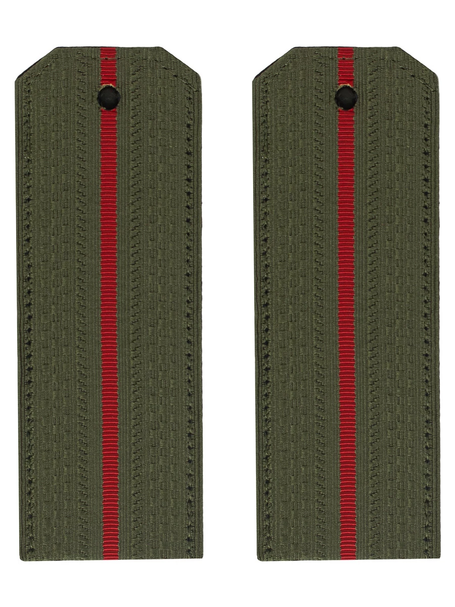Поле погон выполнено из галунной ленты оливкового цвета с одной продольной полосой красного цвета (просветом).