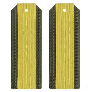 Поле погон выполнено из галунной ленты оливкового цвета с одной продольной полосой желтого цвета (просветом).