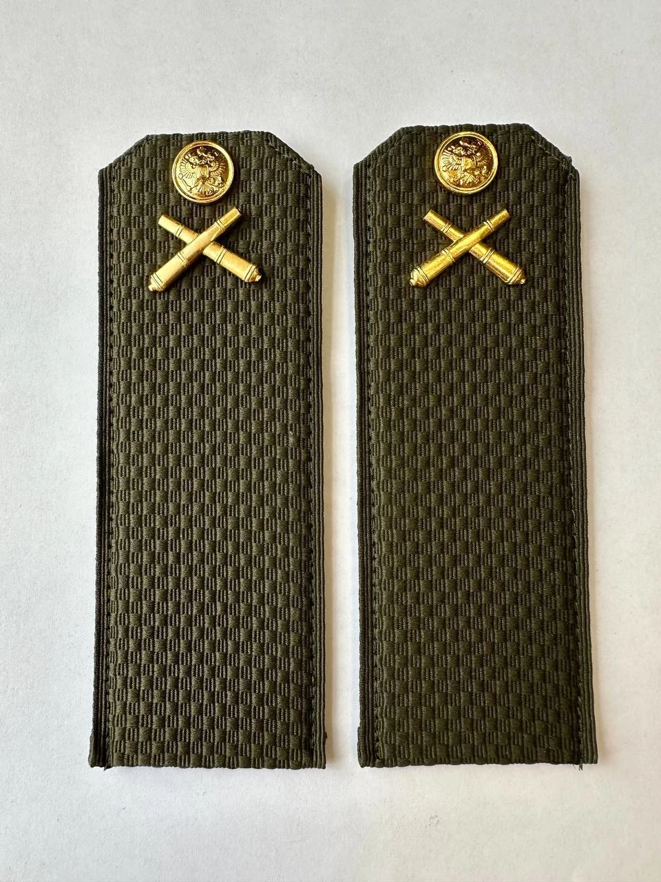Зеленые погоны Министерство обороны РВиА Ракетные войска и артиллерия звание Рядовой на картонной основе размер 14х5см. Погоны зеленые ткань жаккард, основа картон. Погоны идут сразу в сборе с металлической фурнитурой из латуни и застежкой кляммером. При креплении жестких погон необходимо использовать застежку-кляймер. Необходимо продеть ленту погона в специальные петли на уставной форме.