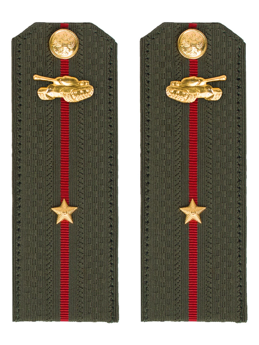 Зеленые погоны Министерство обороны Танковые войска звание Младший лейтенант на картонной основе размер 14х5см. Погоны зеленые ткань жаккард, основа картон. Погоны идут сразу в сборе с металлической фурнитурой из латуни и застежкой кляммером. При креплении жестких погон необходимо использовать застежку-кляймер. Необходимо продеть ленту погона в специальные петли на уставной форме.