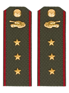Зеленые погоны Министерство обороны Танковые войска звание Старший Прапорщик (реквизит) на картонной основе размер 14х5см. Погоны зеленые ткань жаккард, основа картон. Погоны идут сразу в сборе с металлической фурнитурой из латуни и застежкой кляммером. При креплении жестких погон необходимо использовать застежку-кляймер. Необходимо продеть ленту погона в специальные петли на уставной форме.