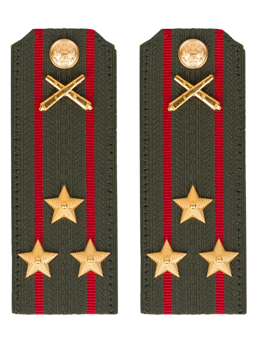 Зеленые погоны Министерство обороны РВиА Ракетные войска и артиллерия звание Полковник на картонной основе размер 14х5см. Погоны зеленые ткань жаккард, основа картон. Погоны идут сразу в сборе с металлической фурнитурой из латуни и застежкой кляммером. При креплении жестких погон необходимо использовать застежку-кляймер. Необходимо продеть ленту погона в специальные петли на уставной форме.