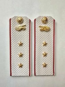 Белые погоны Министерство обороны Танковые войска звание Старший Прапорщик на картонной основе размер 14х5см. Погоны белые ткань жаккард, основа картон. Погоны идут сразу в сборе с металлической фурнитурой из латуни и застежкой кляммером. При креплении жестких погон необходимо использовать застежку-кляймер. Необходимо продеть ленту погона в специальные петли на уставной форме.