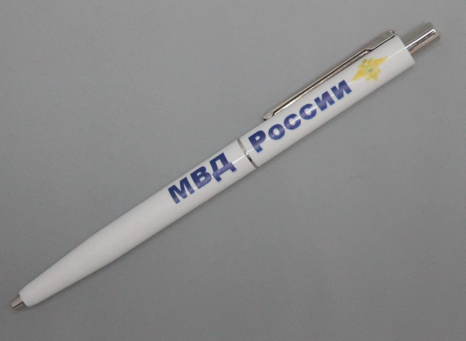 Ручка шариковая с символикой МВД России цвет белый (синяя паста)