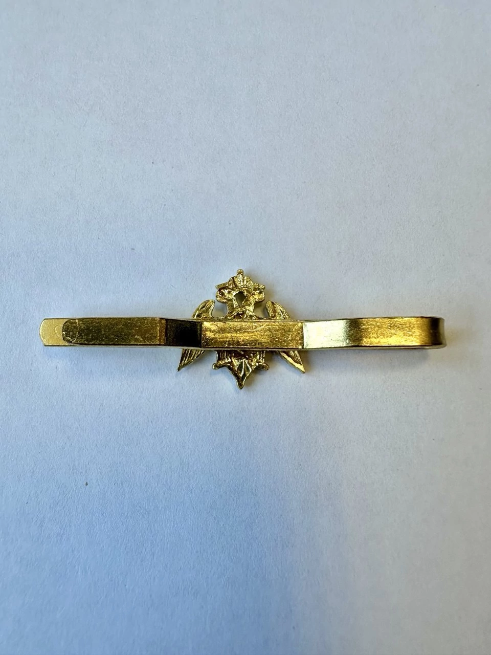 Зажим для галстука Росгвардия из латуни. Зажим для галстука – это изысканный элемент мужского гардероба, который сочетает в себе как практическую, так и эстетическую функцию. Модель, выполненная в золотистом цвете, привлекает внимание не только своим блеском, но и высоким качеством материала.