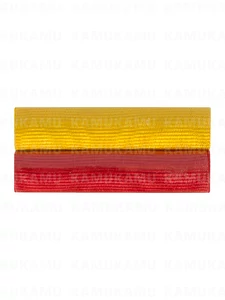 Медальная планка за ранения двойная цвет желтый и красный. Планка — знак отличия за лёгкое и тяжёлое ранение. Она изготовлена из полиэстеровой ткани, закреплённой на алюминиевой основе и покрытой плотной ПВХ-плёнкой, которую при желании можно снять. Планка крепится к кителю булавкой. Размер планки составляет 40 на 9 миллиметров.