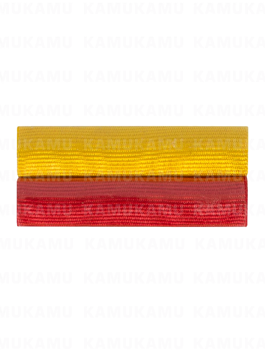 Медальная планка за ранения двойная цвет желтый и красный. Планка — знак отличия за лёгкое и тяжёлое ранение. Она изготовлена из полиэстеровой ткани, закреплённой на алюминиевой основе и покрытой плотной ПВХ-плёнкой, которую при желании можно снять. Планка крепится к кителю булавкой. Размер планки составляет 40 на 9 миллиметров.